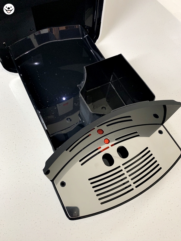 트레이를 앞으로 잡아당기면 원두 찌꺼기 통과 오수 받이 통이 나옵니다.