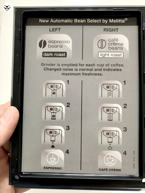 왼쪽이 1번 원두 통 오른쪽이 2번 원두 통입니다.