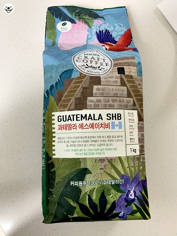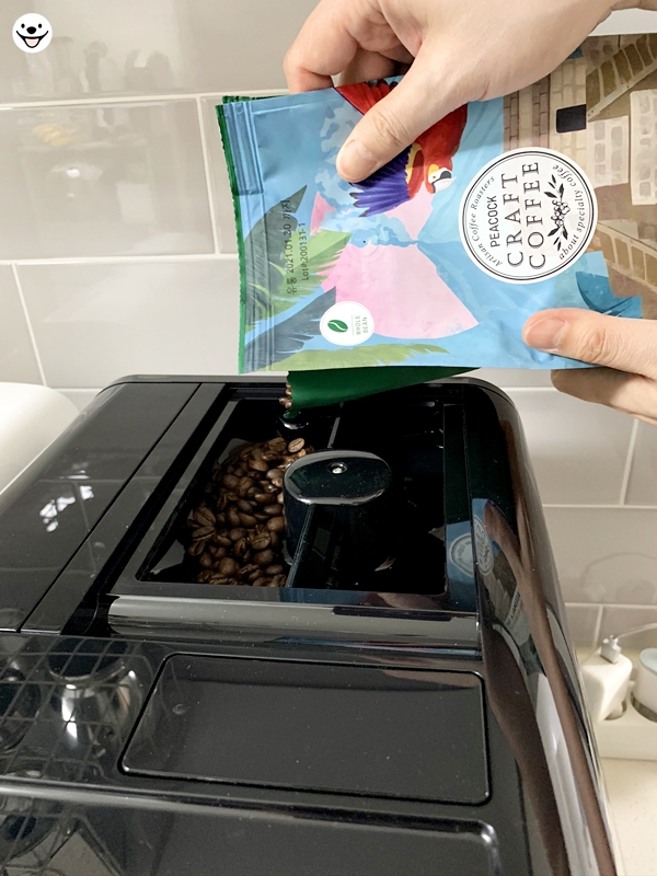 가성비가 좋은 PEACOCK 원두를 넣습니다.