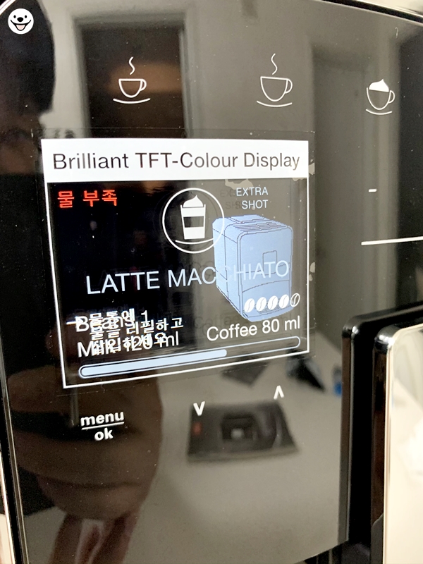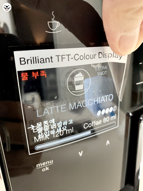 물은 넣지 않은 상태라 물을 넣으라고 디스플레이 창에 안내가 나옵니다.
