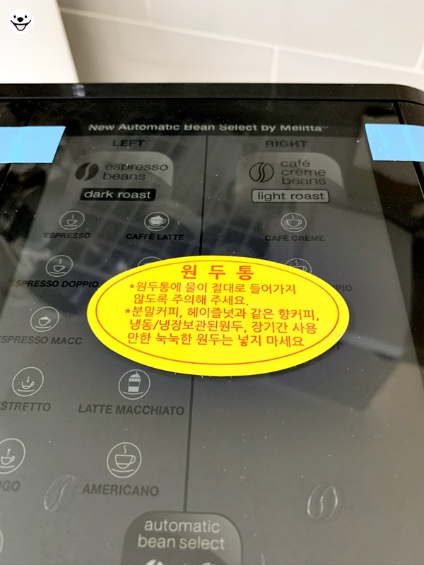 원두통은 두개로 분리되어 있어서 각각 맛이 다른 원두를 넣고