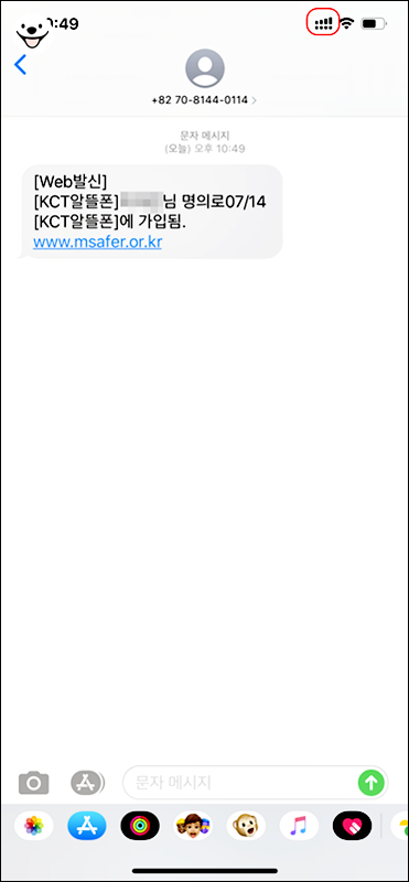 그리고 오른쪽 상단의 통신 안테나의 신호 강도가 정상적으로 모두 나오기 시작합니다.