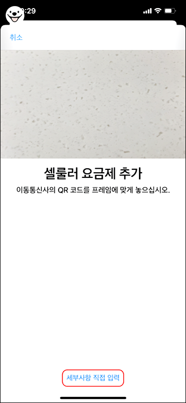 QR코드 촬영 후 바로 셀룰러 구성 중이라는 알림이 나타납니다.