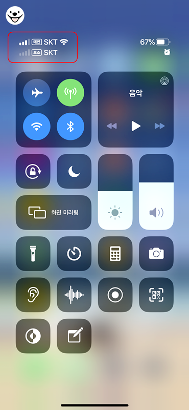 10. 아이폰 재부팅 이후 두 개의 통신사가 정상적으로 나옵니다.